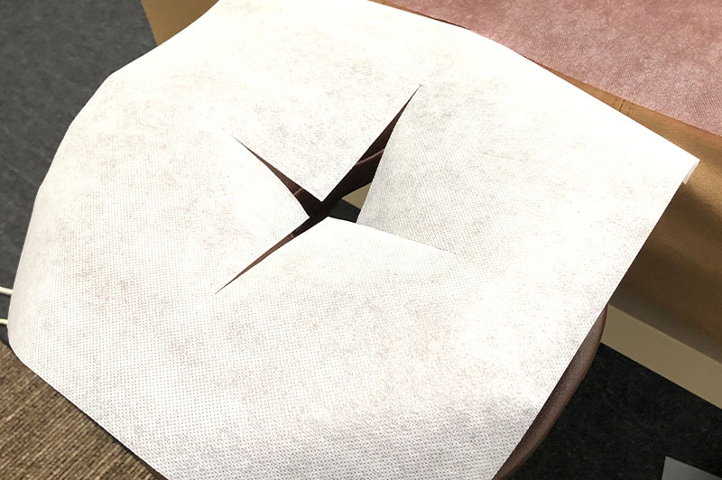 ベッドシーツ、マクラには不織布の使い捨てタイプを使用しております。また、患者さんにおかけするタオルも毎回交換。