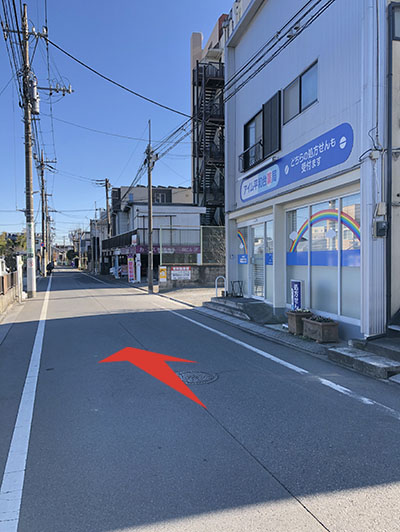 右側に消防署を見ながら直進(ここから看板が見えてきます!)