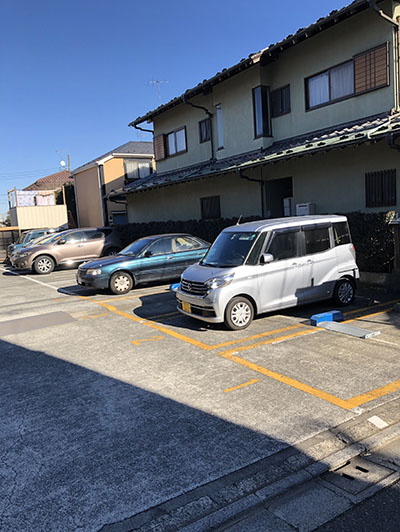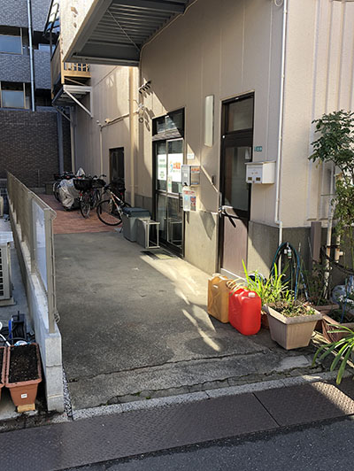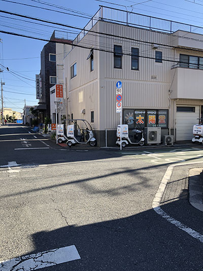 太陽堂が見えてきました!!周りに訪問用の屋根付きバイクが停まっています