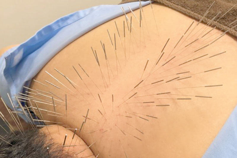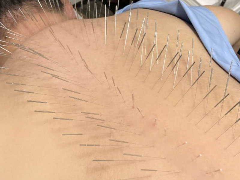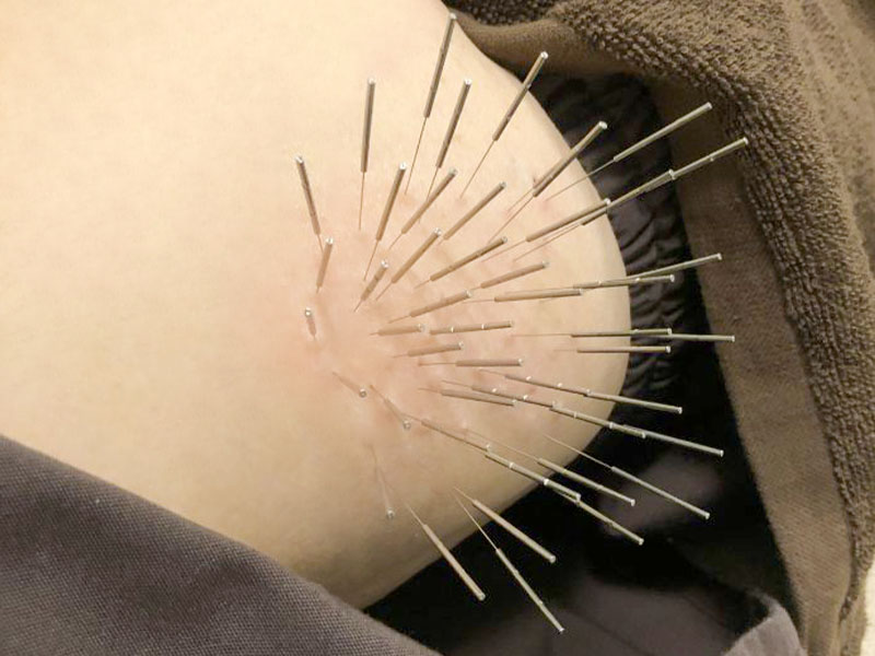 一般的に日本で実施されている鍼灸よりも少し太めの鍼を
