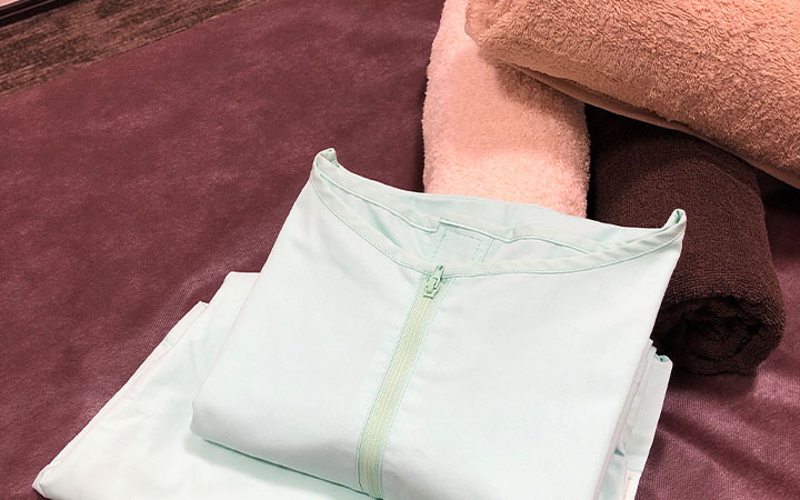 ルート治療のご予約時には、特に持ち物はありません。治療時は専用の施術着を用意してあります。